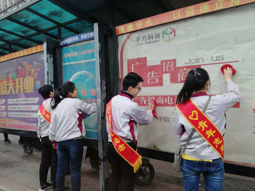 公司青年员工积极响应,对丰华大厦附近的公交站点、公共自行车停放点等进行义务清扫。活动中大家充分发扬不怕脏、不怕累的精神,清洗过的站点焕然一新,受到路过市民的赞许和表扬。